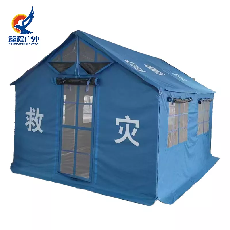 Sebagai produsen tenda bantuan darurat profesional Tiongkok, Tenda Bantuan Bencana Darurat 12㎡ Pengcheng Outdoor mengadopsi kain tahan air dan tahan api berkekuatan tinggi dengan struktur baja yang diperkuat, meningkatkan daya tahan sebesar 50% dan menahan angin kencang level 8. Desain modular memungkinkan perakitan cepat dan perawatan mudah. Dilengkapi dengan jendela ventilasi dan rambu darurat, memenuhi kebutuhan multi-skenario seperti pusat komando, stasiun medis, dan tempat penampungan darurat.Rincian Produksi1. Spesifikasi Inti dan Kinerja Tenda Bantuan Bencana Darurat 12㎡· Ruang dan Struktur: Struktur dinding vertikal miring ganda persegi panjang standar dengan dimensi 3,7m (panjang) × 3,2m (lebar) × 2,67m (tinggi puncak) × 1,75m (tinggi atap), mencakup 12㎡ area yang dapat digunakan dan menampung sekitar 5 orang untuk sementara. Rangkanya memiliki desain plug-in dengan ground crossbars untuk memastikan keamanan saat angin kencang.